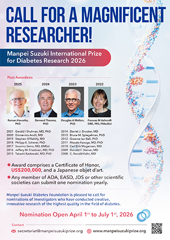 Nominations open for 2025 Manpei Suzuki International Prize for Diabetes Research |